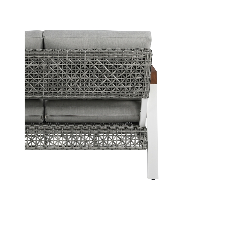 Ionia sofa collection perfectly matches both elegance and novelty displaying through aluminum frame and wicker base. The painting of aluminum armrests origins from teak, along with well-woven wicker, magnify the comfort of your experience.
