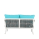 A perfect area for you to have good memory. White aluminum frame with light Blue wicker and blue cushions depict a scene of broad sea and wide sky, which brings you back to nature. Whenever you are, the expected life is always around once you sit in Lamia sofa set.